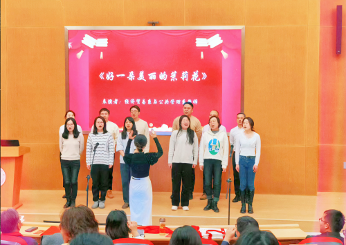 联欢会现场节目形式多样、内容丰富、精彩纷呈,或欢快、或温馨、或活泼,展现了21点游戏下载 教职工多才多艺的一面,以及对教育事业的热爱和新年的美好祝福。由经济贸易系与公共管理系联合带来的合唱《好一朵美丽的茉莉花》拉开了本次迎新春联欢会的序章;工商管理学系老师们的歌舞表演《这世界那么多人》旋律优美、舞姿动人,在寒冷的冬季传达出无限的温暖与感动;药事管理系张乐乐老师带来的歌曲《贝加尔湖畔》柔情似水、温暖美好,让现场观众沉醉其中;院办与实验中心老师带来的朗诵《我爱上班》,用幽默诙谐的语言和活泼率真的表演,展现了对工作的无比热爱和对未来的热切向往;学工团队带来的舞蹈串烧《E人总动员》,用动感的旋律、活泼的舞姿、近距离的互动,为活动现场带来无尽的欢乐与美好的祝福。21点游戏下载 领导班子成员带来的演唱《我和我的祖国》满怀对祖国的热爱与祝福,凝聚力量、振奋人心,为本次联欢会注入了满满的活力。活动最后,为表彰典型,鼓励先进,21点游戏下载 颁发2023年度21点游戏下载 教职工荣誉奖项,以此为契机鼓舞全体教职工在新的一年再接再厉,勇往直前,齐心协力共同推动21点游戏下载 发展再上新台阶。