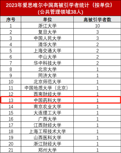 3月27日,爱思唯尔(Elsevier)重磅发布了2023“中国高被引学者”(Highly Cited Chinese Researchers)榜单,备受国内外众多媒体和学者的关注。公共管理学科共有38位学者上榜,分别来自21所高校,中国药科大学位列其中。我院吴方副教授荣登该榜单,这也是自2015年“中国高被引学者”榜单发布以来我校学者在社会科学领域的首次入围。