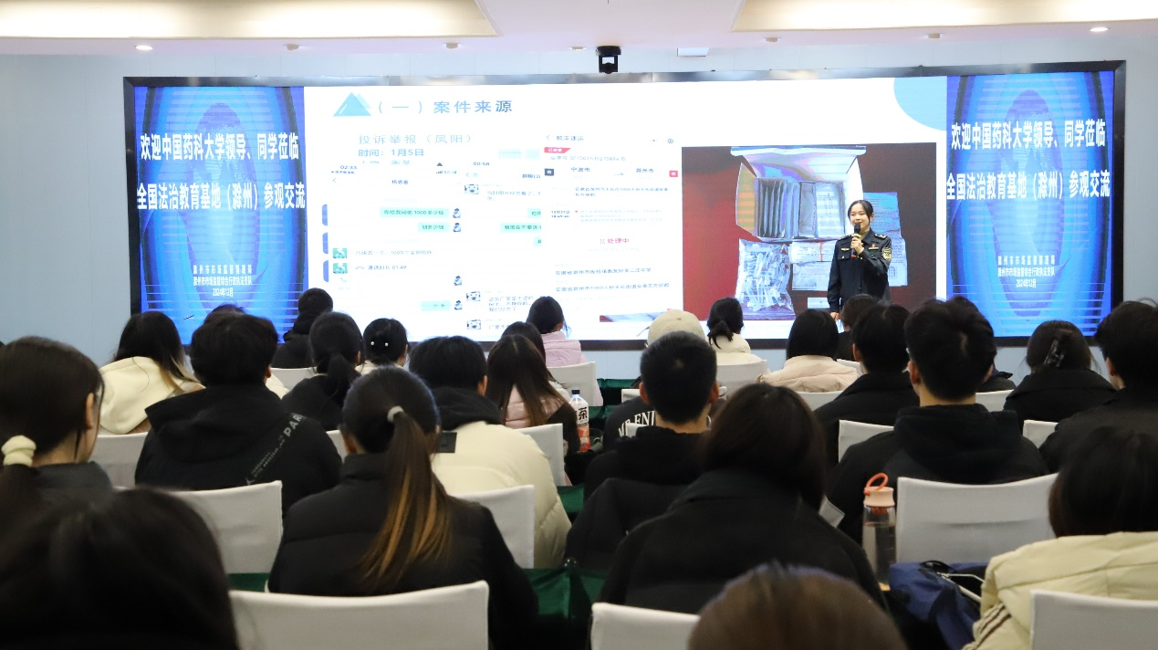 为进一步提升《中国药事法规》课程教学效果,创新教学模式、增强课程实践性,12月10日,21点游戏下载 药事管理系组织2022级药事管理专业百余名学生前往国家药品监督管理局(滁州)药品法治宣传教育基地——滁州市药品监管实景馆开展案例教学。