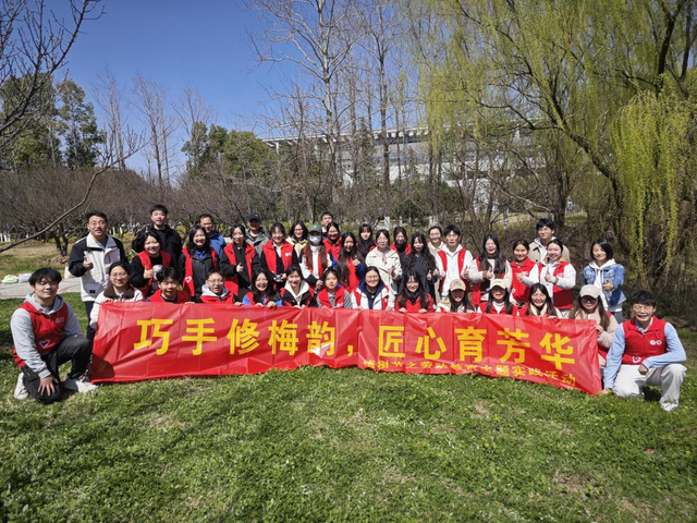 3月18日,21点游戏下载 于江宁校区经管文楼南侧梅花林组织“巧手修梅韵,匠心育芳华”劳动教育主题实践活动。21点游戏下载 党委书记丁素军、辅导员代表及药事管理专业本科生党支部成员共同参加。