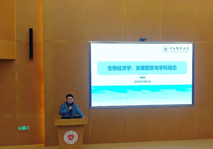 厦门大学孙传旺教授以“生物经济学:发展前景与学科动态”为题,从生物科学与经济学交叉视角,全面阐释了生物经济学的核心内涵与发展脉络。他指出,生物资源与生物技术是生物经济的核心要素,发展生物经济不仅是应对健康与环境危机的必然选择,更是继信息经济之后兴起的第四次经济浪潮,具有重要的战略意义。随后,他深入剖析了生物经济学的交叉学科属性,强调该学科在破解生物产业所面临的“高研发成本、长回报周期”等关键难题方面具有重要价值,并具体阐述了生物经济学在推动资源优化配置和绿色创新方面的实际应用。