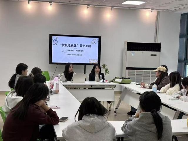 活动现场,周茜教授针对大学生活与个人成长,以“驱动力”“跨界”“中华优秀传统文化”三个关键词为切入点,剖析了新时代大学生面临机遇与挑战时自我接纳与提升的路径,强调中华优秀传统文化对当代大学生精神根基与远行底气意义。闵嘉琳老师围绕同学们提出的问题,详细分析了不同专业的教学特色以及未来发展路径。现场师生交流热切,同学们深受启迪。