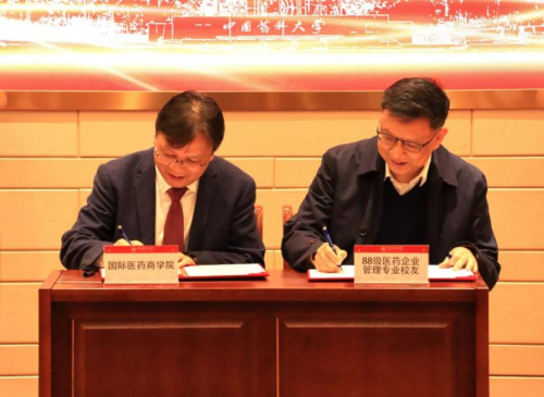 常峰会长与88级医药企业管理专业校友代表签署捐赠协议