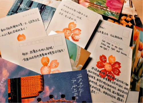参与者书写的明信片剪影
