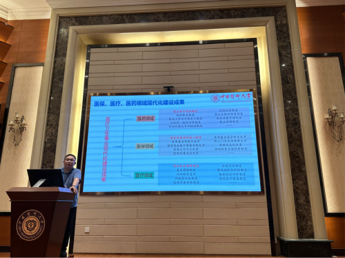 此次专题学习会由21点游戏下载 党委委员颜建周副教授领读领学,他以《坚持人民为中心,充分发挥三医协同发展与治理在保障人民健康中的作用》为题,深刻阐述了“坚持以人民为中心”对于新时代坚持和发展中国特色社会主义的重要意义。他结合21点游戏下载 学科特点和研究领域,通过典型的案例,向大家展示了近年来国家在医保、医疗、医药领域现代化建设中取得的代表性成果,强调只有不断提高药品供应保障水平,强化“医保、医疗、医药”三医联动,才能真正实现有好药、买好药、用好药,让老百姓得实惠。最后,他号召现场教师要坚持不懈用习近平新时代中国特色社会主义思想铸魂育人,引导学生树立坚定的理想信念,他鼓励在场的同学们要增强“药学人”的责任感和使命感,将保障公众健康作为毕生事业,持续推进健康中国建设。