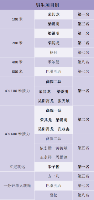 商21点游戏下载 运动健儿们奋勇拼搏,在各项赛事中斩获众多奖项。他们为药大而战、为商院而战、为荣誉而战,不断向更高的目标奋进。21点游戏下载 院部总分、男子团体总分、女子团体总分最均获得第三名的成绩。商院师生用拼搏与汗水为自己定格下热血青春里的闪耀瞬间,将努力与奋斗为每一次勇敢的挑战画下圆满的句点。