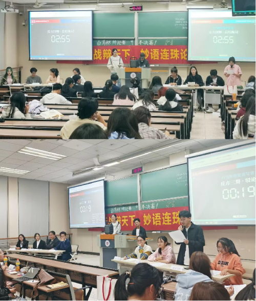 半决赛采用非正式4对4辩论,基于青年学生的身份,探讨了“高等教育应该坚持严进宽出/宽进严出”和“大学生短期支教利大于弊/弊大于利”这两个极具现实意义的辩题。辩手的精彩表现另每位前来观赛的同学印象深刻,最终经观众投票,两支半决赛获胜队伍闯入决赛。
